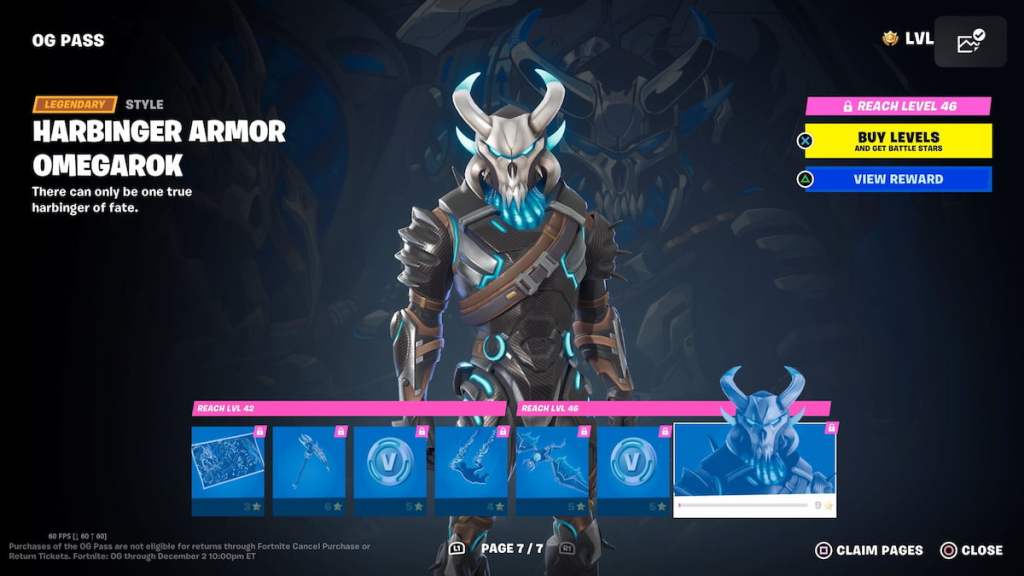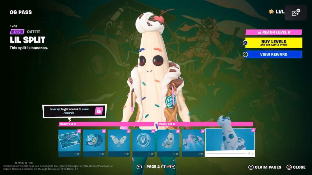 Each page of the Fortnite OG Season Battle Pass will contain 7-8 cosmetic items. You can unlock them in the order you see fit using Battle Stars as long as you are at the required level.
