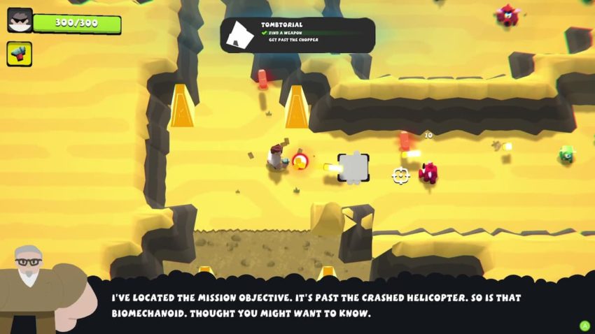 If you’ve ever played Enter the Gungeon or The Binding of Isaac, then you already know what the gameplay is like. Sam, or one of the many unlockable characters, progresses through levels while finding chests and unlocking randomly generated weapons and upgrades. Your primary weapon, a pistol, can be modified after every boss fight with extra effects (such as Burning, Split-shot, and so on.) Extra weapons can also be acquired, and these “Serious” weapons typically have limited ammo but heavy firepower.
