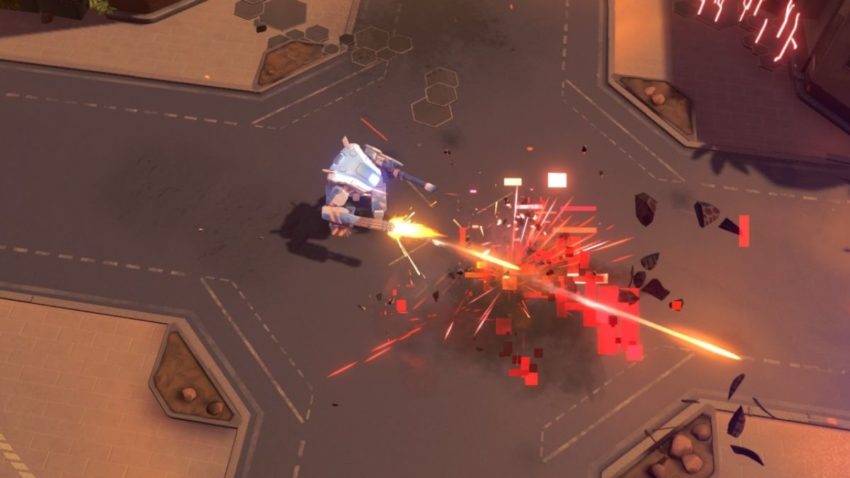 The main meat and potatoes, however, are in the top-down shooting. for the most part, it succeeds in every way. The minigun allows you to send a satisfying flurry of bullets to your enemies, and the rocket launcher blasts everything in sight. In addition, you can unlock new weapons as you proceed through the game like a sword and a rail gun that shoots out a devastating laser toward your foes.