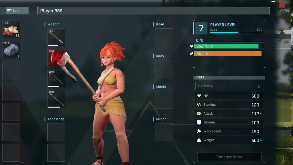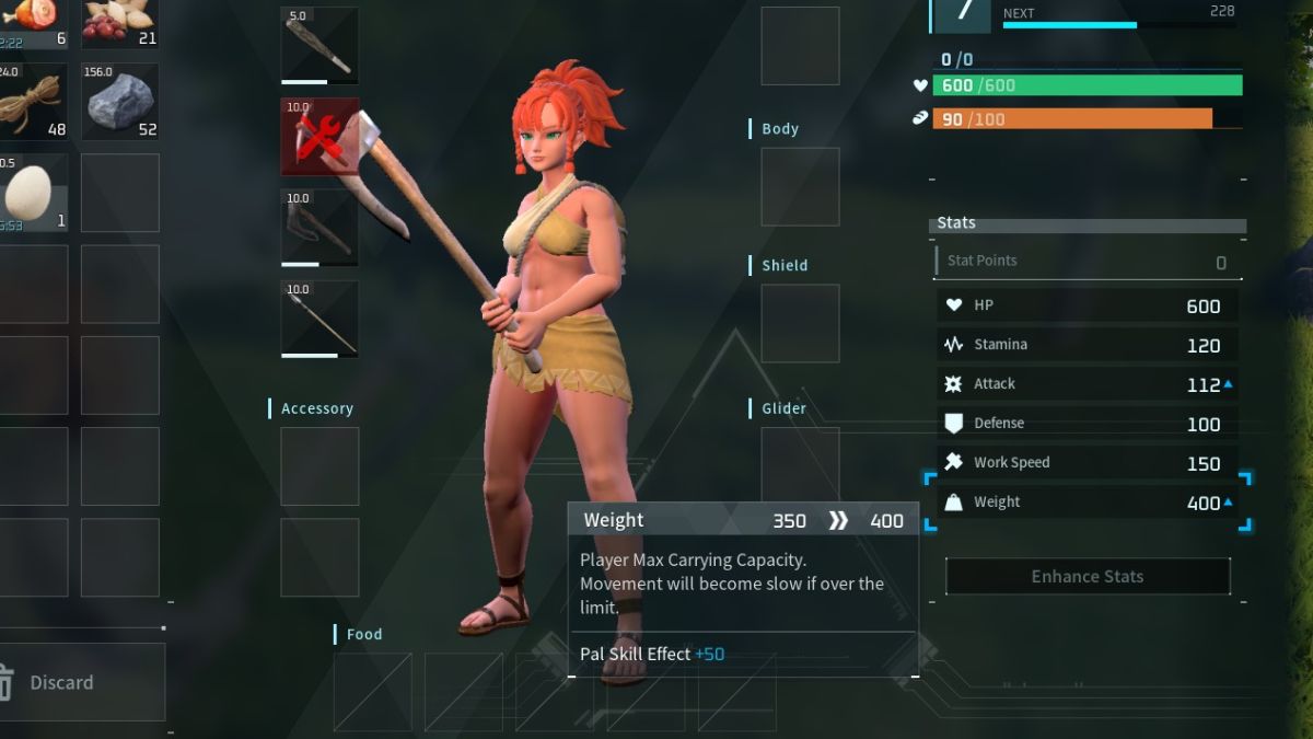 If you play a lot of combat-heavy RPGs like I do, you might be tempted to put all of your stat points into offense, defense, and the like. However, don’t overlook the Weight stat, especially early on. This increases your carrying capacity, which means you can gather more resources and items before needing to head back to base to offload.