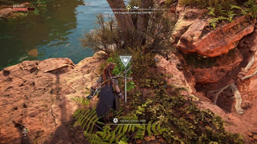 Talk to Milduf in Chainscrape to get this errand. After a brief cutscene, he will ask Aloy to collect some ingredients and fetch him a new pan to cook with. He needs two ingredients; Bitter Leaf and Boar Meat. Time to put your hunter-gatherer skills to the test. After talking to Milduf, head outside of Chainscrape and check around the river for Bitter Leaf.