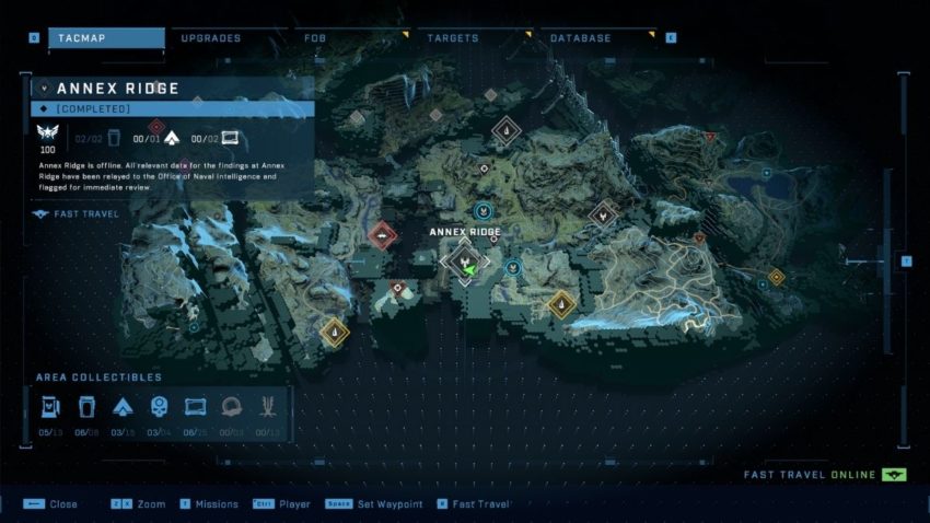 Annex Ridge is located in the southern section of the map and cannot be accessed until you have completed the Pelican Down mission and start the Sequence mission. You can find Annex Ridge near FOB Kilo and it will automatically appear on the map once you have captured FOB Kilo. Use the map above for reference if needed.