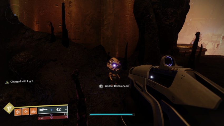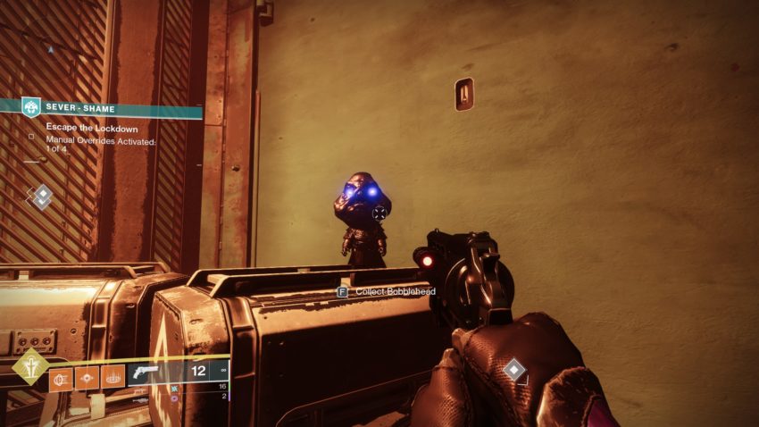 You’ll need to make it almost to the end of the Sever – Forgiveness mission to get week 4’s Calus Bobblehead. In the tube just before the pipe leading to the Severance site, hop up into the orange-lit connector separating the entryway from the path leading to the Egregore spores and the final path to the site.