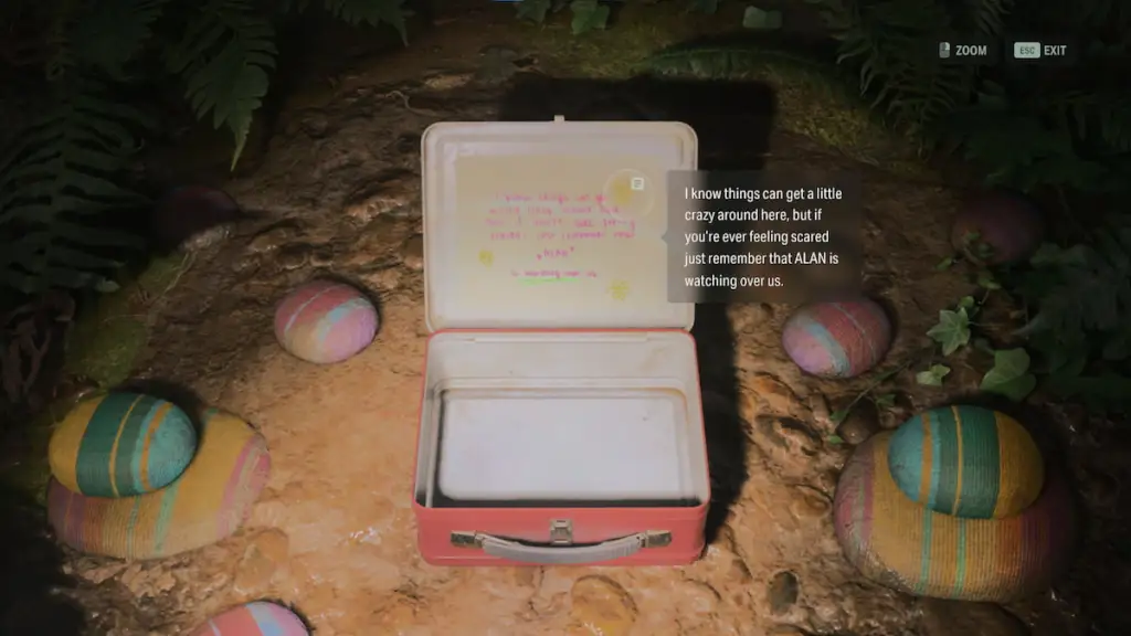 Alan Wake 2 is a game full of mysteries, and one you need to learn about are the several Alex Casey lunch boxes scattered all over the game. There are numerous you can find in the area of Cauldron Lake while you wander around.