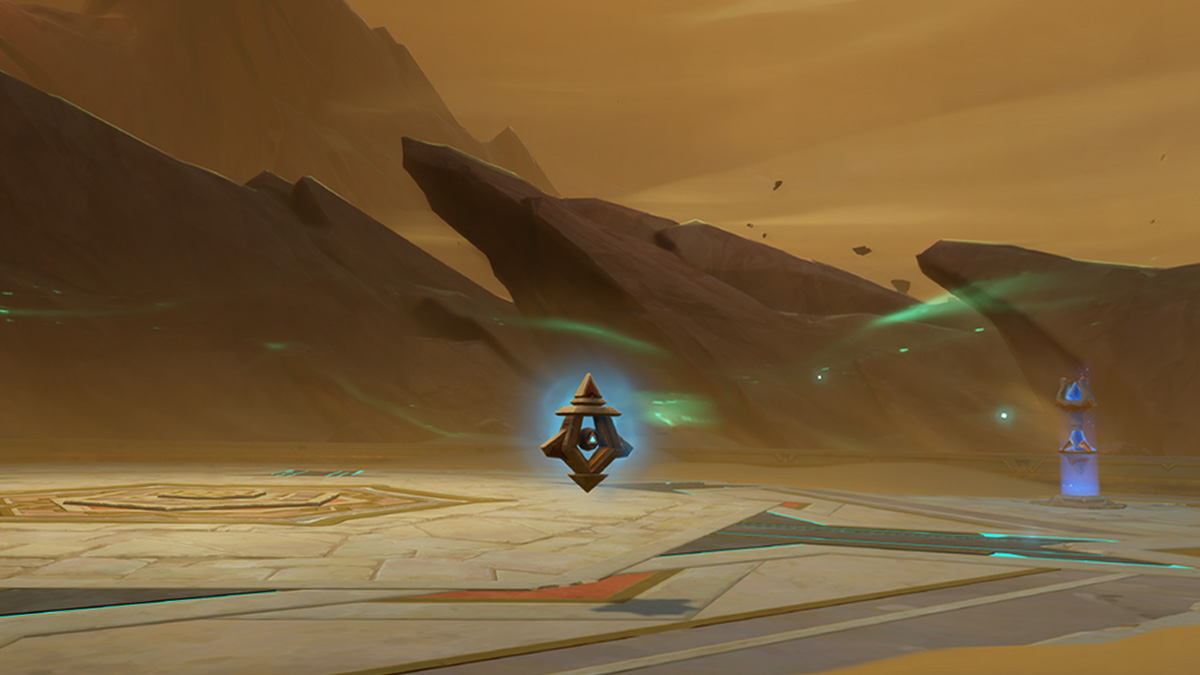 The Activation Device used to activate the King Deshret’s Pillar Chess Piece is located on the northern side of the Mausoleum of King Deshret, south of the northern ruins Teleport Waypoint.