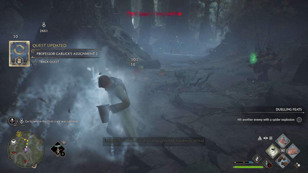 Those working on Professor Garlick’s Assignment 2 will need to use all three of these plants simultaneously during combat. You’ll want to make sure you have at least one of each in your inventory and then make your way to the Forbidden Forest. There are typically several Dark Wizards and spiders you can fight against in this area and use these plants against them.