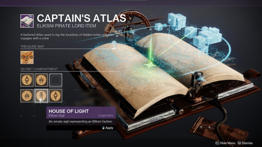 After activating those in the Captain’s Atlas, the next piece of text breaks down the order you need to place them. The highlighted text reads: “dusk left, light right, salvation center.” This breaks down the order for you to place the three sigils in your Captain’s Atlas. The correct order is going to be Dusk, Salvation, and Light. This will lead you to a specific location.