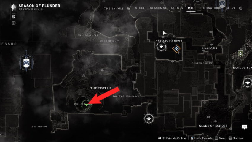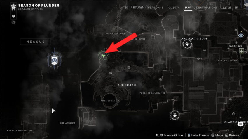 After completing the Expedition, the fourth step will be available. This one is a bit more straightforward with its riddle. The highlighted text reads, “Nessus column cistern pyramid’s imprint pass through.” For this part, you will need to travel to the planet Nessus and explore The Cistern region. You will need to make your way to the southwest portion of the map and explore the Well of Flame.