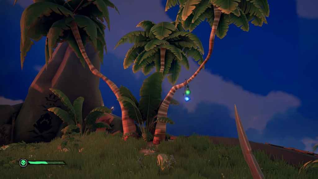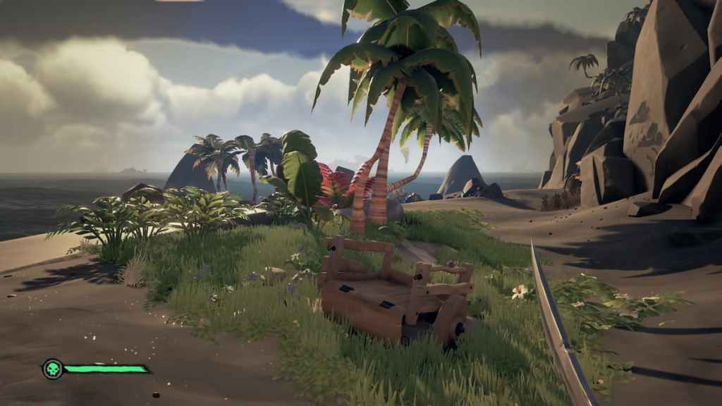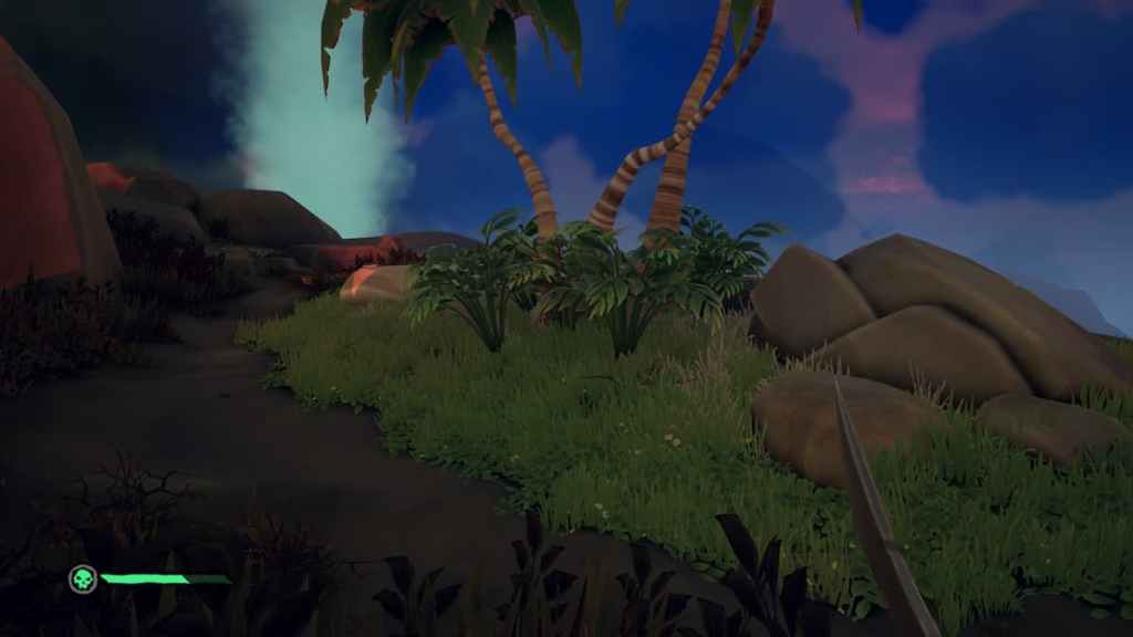 Next, make your way to Marauder’s Arch. There are another two books on this island. The first is nestled between three rocks on the Northwest beach. There will be a Kraken skull nearby to let you know when you are close. The green grass will be easy to spot among the sand and rocks of the island.