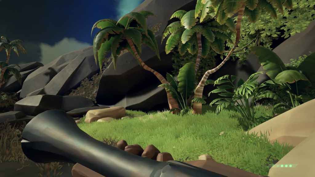 From the third book’s location, head up to the stone arch that connects the two islands. Be mindful of the gap in the middle of it, as you can fall into the sea from there and have to make the trek all over. About halfway toward the second island, you’ll see another patch of green. Check the large, flat rock in that patch. The fourth book should be lying on top of it.