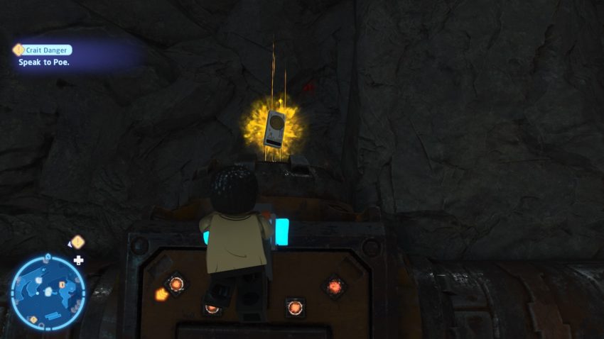 You can discover the Crait Outpost Datacard by heading to the northwest corner of the main hanger. The card sits on a ventilation system you can get to by climbing on the structures to the left of it. Once you’re on the structure closest to the card, you should switch to a Hero-class character to jump and grapple onto the ventilation system.