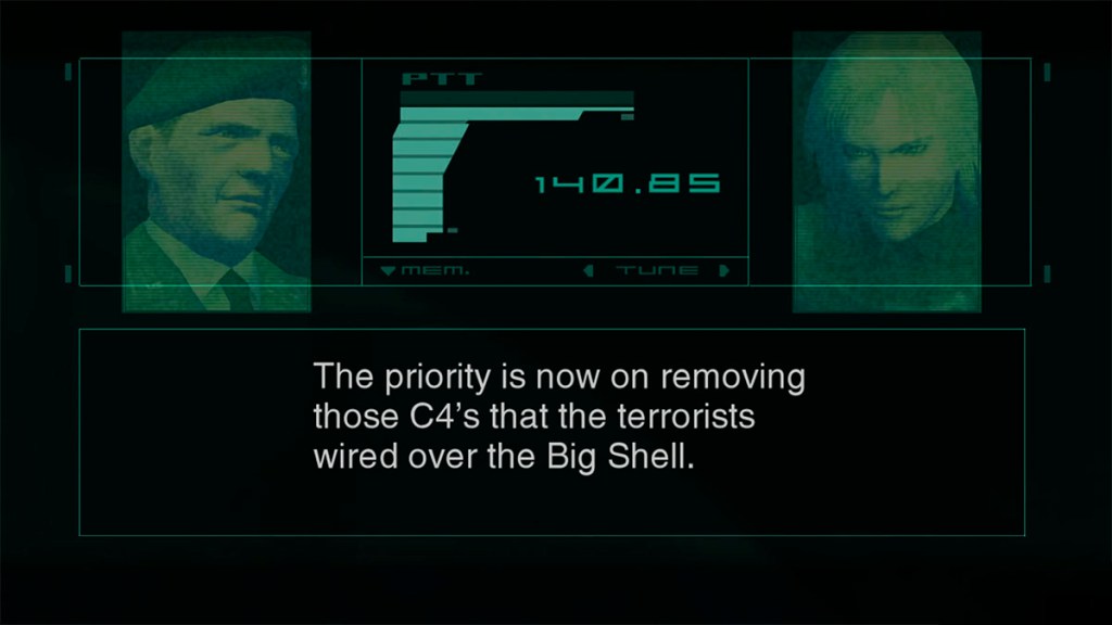Out of the twelve scattered bombs, your responsibility is to disarm just six. To assist you in this task, Stillman provides a Coolant for freezing the bombs in place and an Ion Mobility Spectrometer for radar assistance. The Coolant is a freezing spray while the Spectrometer detects the C4 bombs’ gas scent, marking them with a distinctive green cloud on the sensor. Even with all this tech, Raiden is still a noob at disarming C4 bombs, and you’re even more at a loss trying to find them in Metal Gear Solid 2.