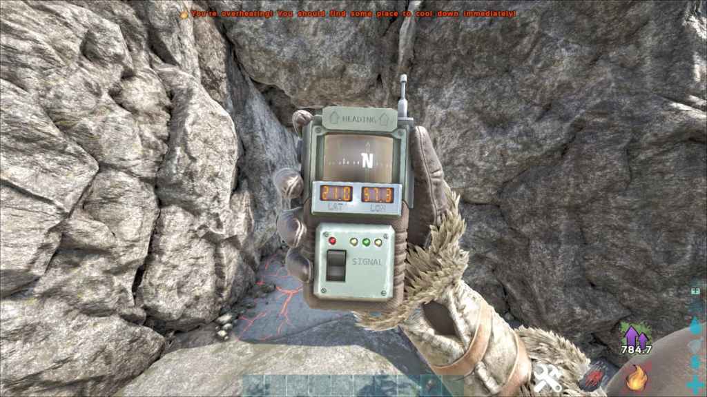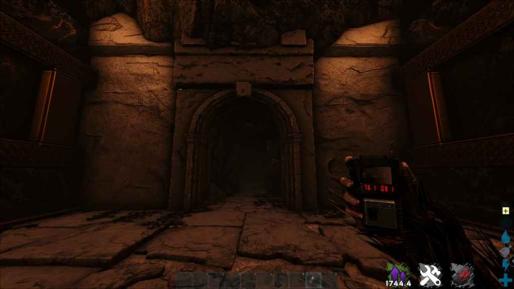 To find this Artifact, you’ll need to head over to the lava and volcanic island on the main part of the map. It’s easy to spot as it has an obelisk and a giant volcano. The entrance to this cave is at 90.7, 78.3, and the path to the Artifact is very simple if you continue straight inwards. Be aware that this area is very hot, and the cave you’ll be entering is very hot too. You can use a Megatherium, or if you have a flyer on this map, you can use that to get through the creatures. This cave will have Desmodus, Onycs, Titanoboas, and Pulmunoscorpius.