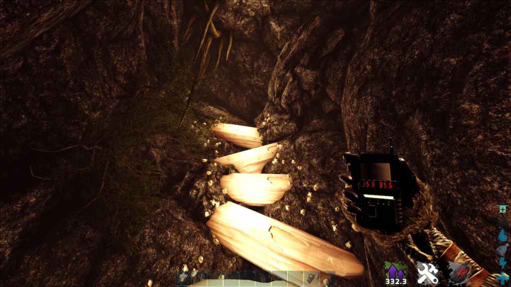 This Artifact is located in the redwoods area. You’ll want to bring Grappling Hooks with you and a tame. The entrance to this cave is at 10.0, 84.4. Once inside, you’ll want to kill or avoid the creatures in the cave, follow the path downwards through the skeleton, and keep left. Eventually, you’ll come to a series of crystals up against the wall in a room with a waterfall.