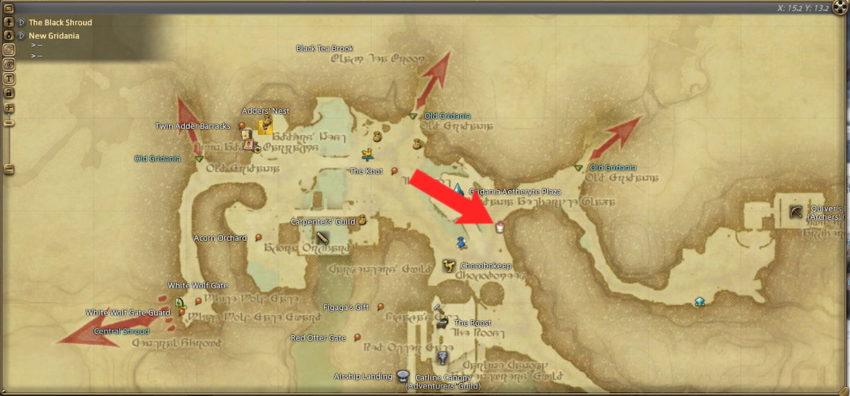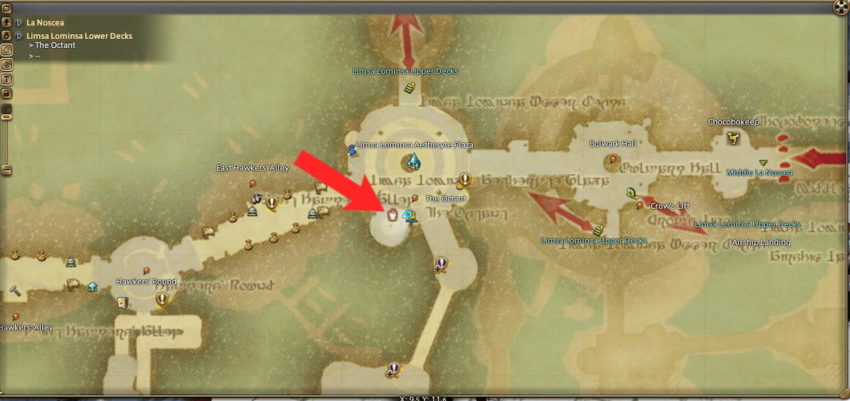 The Limsa Lominsa Itinerant Moogle vendor is right at the city’s center. You can find it not too far away from where you initially land after you fast travel to this location. The exact coordinates are X:9.4, Y:11.6.