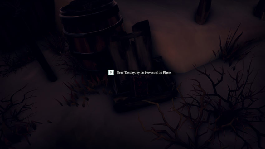 Like Belle’s Journals, those of the Servant of the Flame live in their headquarters at Reaper’s Outpost and at a Sea Fort, this time the Mercy’s End Fortress. Head to Mercy’s End so you can turn in when you return to Reaper’s, provided you want to work with them. If you’re closer to Reaper’s, start there, as that Journal is easier to find.