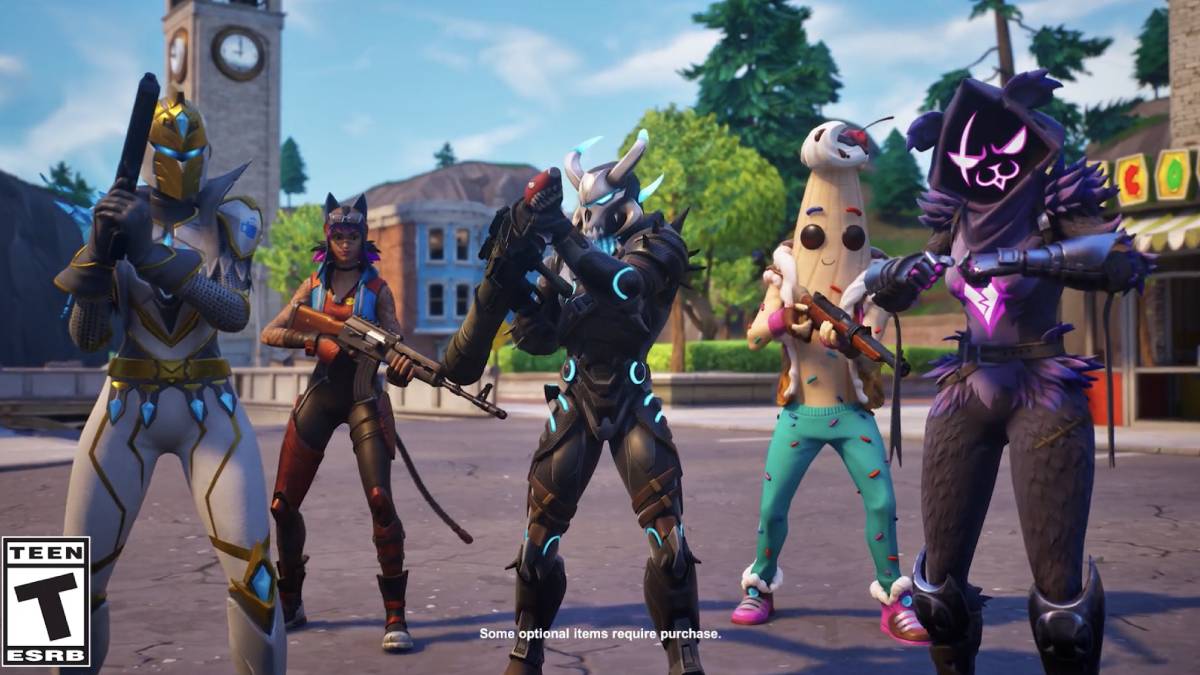 From what we can see from the first image, the notable cosmetics are going to be the return of Peely, which was initially released during Chapter 1, Season 8. We can see Peely on the left side of the image. Behind Peely, we have Team Leader, who appeared during Chapter 1, Season 3, and will likely be available as a Battle Pass reward. Finally, the more difficult of the trio to see is the Ragnarok skin, but we can only see the horns sticking out from the bottom middle of the image.