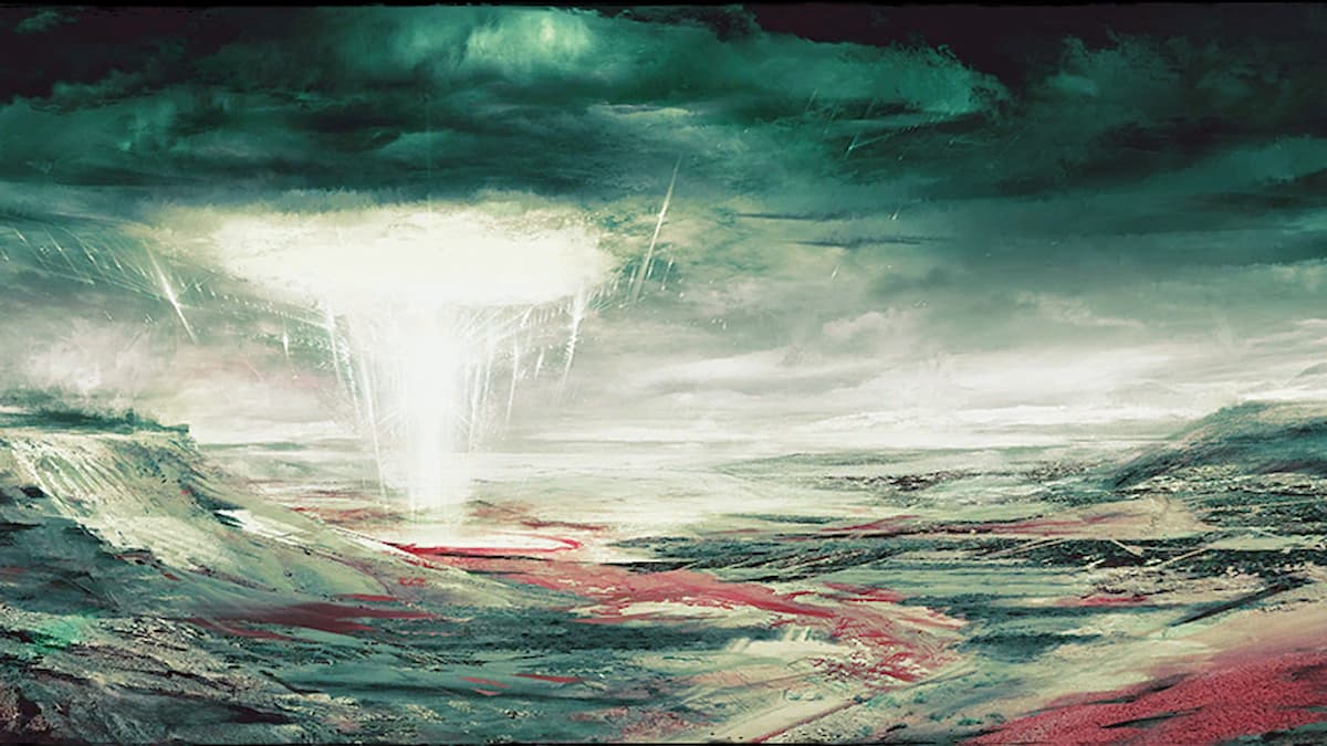 The first Mastery Point is located above a crater and on a floating island. You’ll be able to ride several Updrafts to get there, or you can use a Skyscale to reach it. There are also some bouncing mushrooms to help you get around.