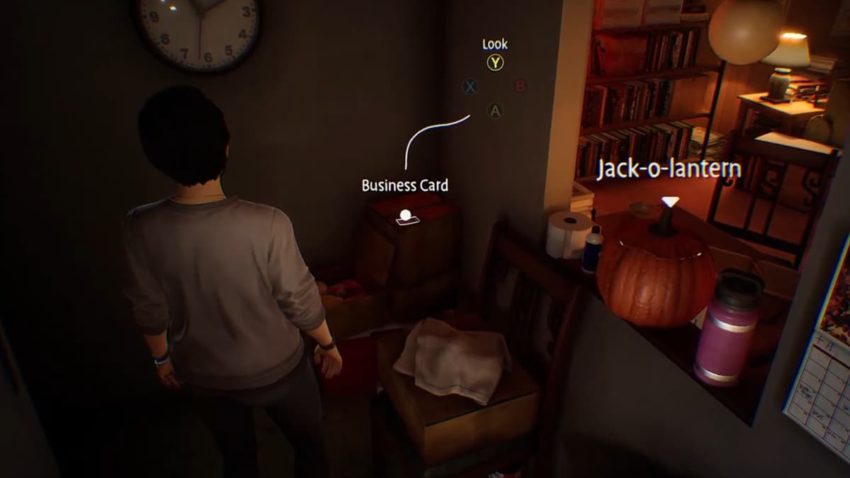 Inside Alex and Gabe’s childhood home, the business card is in the corner in the kitchen. Be sure to grab this before interacting with the front door.