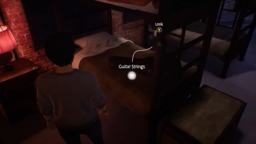 In the Orphanage, the guitar strings are on the lower bunk bed next to the one Alex was lying in.
