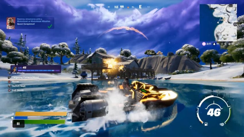 To destroy structures with a Motorboat or Motorboat Missiles in Fortnite Chapter 3 Season 1, you first need to find a Motorboat. The best place to find a Motorboat in Fortnite Chapter 3 Season 1 is in the lagoon on the east side of the map. There is a particularly high concentration of Motorboats south of the Mighty Monument. There are Motorboats scattered around the coastline and in some of the lakes and rivers too. The map below shows all the Motorboat locations in Fortnite Chapter 3 Season 1. Some of the locations marked here have more than one Motorboat.