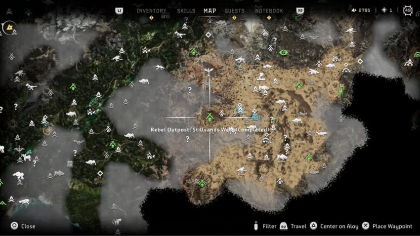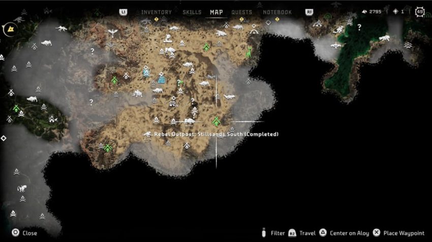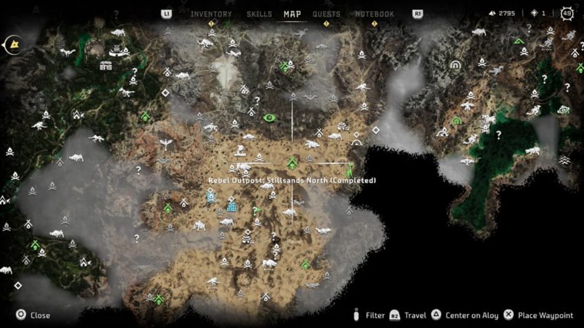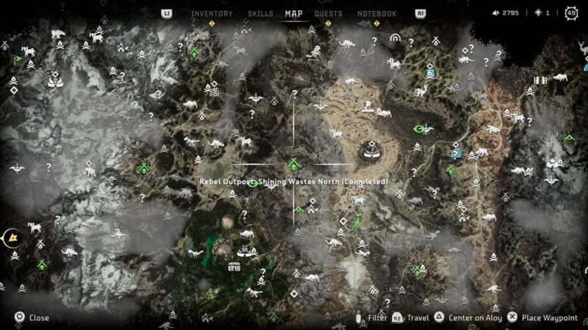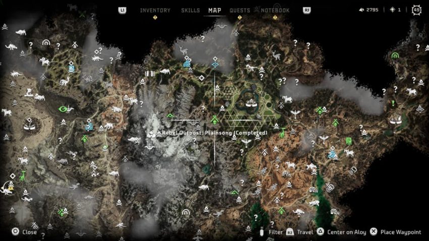 There are a total of 17 Rebel Outposts in Horizon Forbidden West. Some of them may require you to do an extra step of finding the leader’s dog tags in a chest somewhere in the area, but usually, they are very close by. The icon for outposts on the map are similar to Rebel Camps, but they lack the two marks on either side. A blue icon means you have seen it but not completed the outpost, while green means you have already done it.
