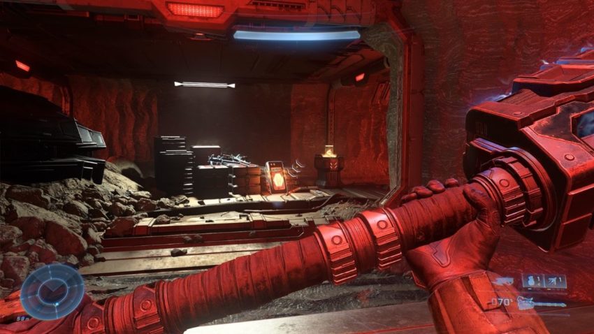 The Spartan Core is up next. You can find this collectible in the same area as the second Banished audio log. Before you can access the Spartan Core, you will need to disable to shield protecting it. Have The Weapon interact with the console in the room to expose the generator. Destroy it and you will be able to access the Spartan Core.