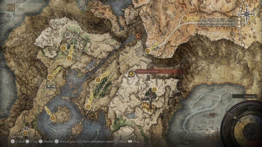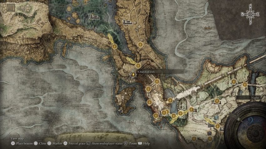 The first of the locations with a Sacred Tear is the Church of Irith. This church is hard to miss and could possibly be the first one you come across in the game depending on the route you take. After getting through Stormveil or going around Stormveil, you will find the church next to the Lake-Facing Cliffs Site of Grace.