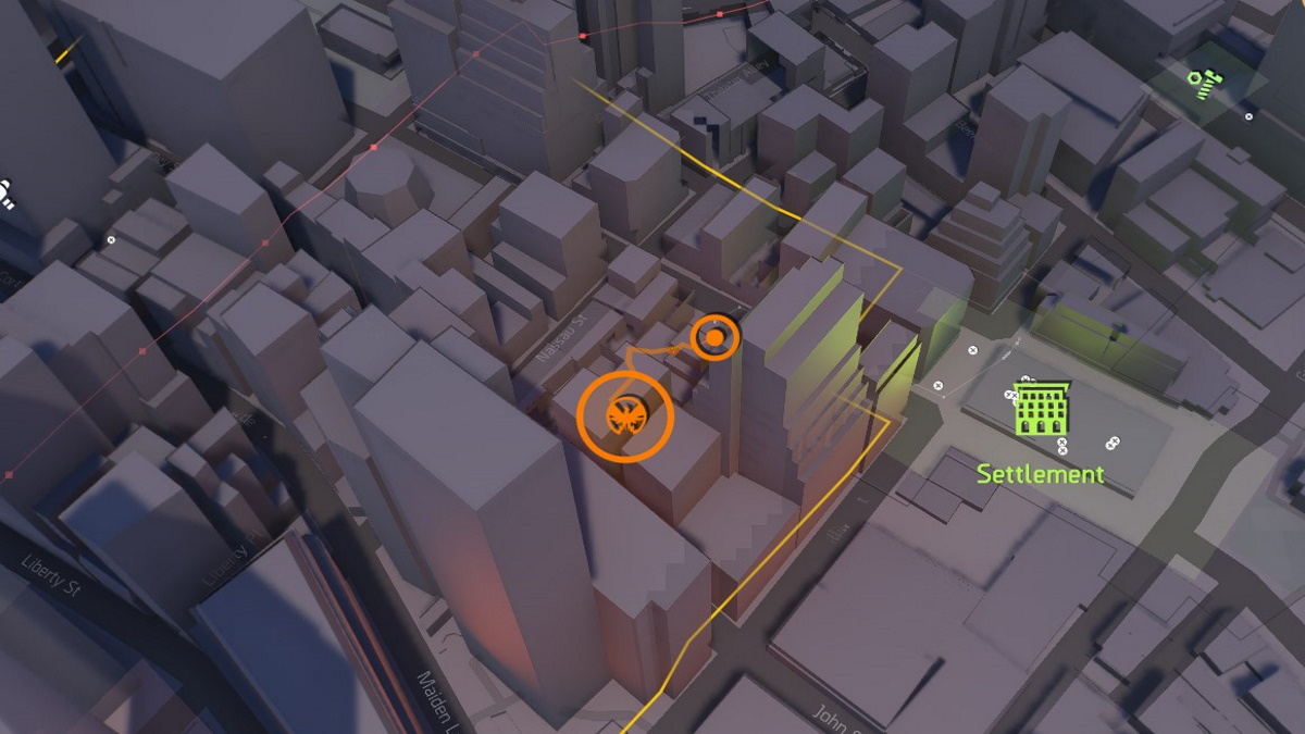 The first cache is close to the settlement. Proceed down the street, but don’t go into the construction zone with the green fence. Avoid it. Instead, go to the first intersection, and then take a left. Go all the way down until you hit the intersection of John and Nassau St. There’s a white semi-truck you can climb, and go up the building using the grappling hook. The SHD cache is hidden behind a locked down. Go down to the lower section of the roof, and you should find a fence you sneak into that’s broken into on the far side next to some generators. Pick up any loot you find, and then climb up the ladder hidden in the back.