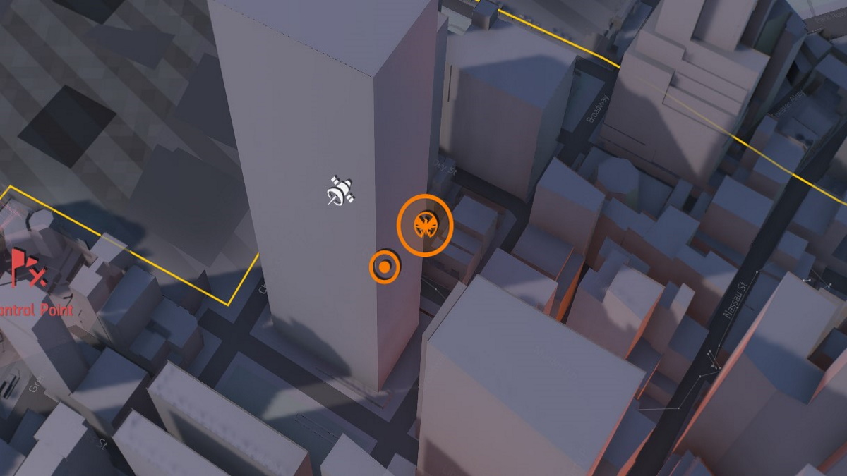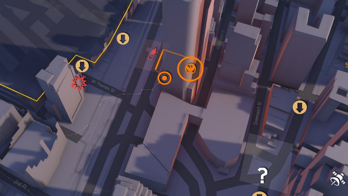 The third cache is near the western portion of the map, next to a large skyscraper. Proceed to the west side of the skyscraper on West st and go down the street north of it, where a construction project is happening above a coffee shop. Go to the left, while facing the coffee shop, and you should see a white semi-truck you can climb to to the construction structure. Follow it, and then to the right, there’s a rope you can grapple up to the top of the structure, obtaining the cache at the top.