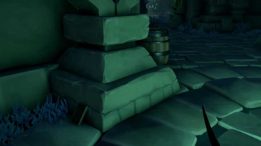 The third journal can be found after you exit the primary room, which you can do by lighting the four torches and then standing on the four tiles in the room. Once you’ve done that, you’ll be able to advance further in the temple at the top of the steps. When you reach this area, the barrels to the right of this entrance have the third journal on top of them.