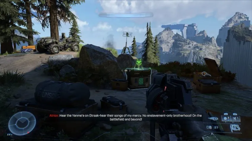 This spartan core is found by the Eastern AA gun. If you follow the laid-out dirt path, you’ll eventually come across a sniper tower and two forks in the road. There’s a hill toward the right, but there’s also a path behind the tower itself, which is easy to miss if you’re not paying close attention.