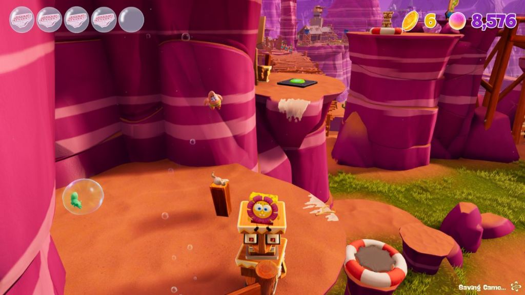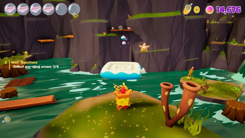 The residents of Bikini Bottom will give you tasks to complete as you progress through SpongeBob SquarePants: The Cosmic Shake. Some might ask you to grab some Pennies, while others will ask you to obtain Sticky Notes. Plankton will ask you to help him find his beloved pet named Spot. Spot has gone missing and is hiding in each one of the game’s many levels. You need to locate where Spot is hiding to get rewarded.