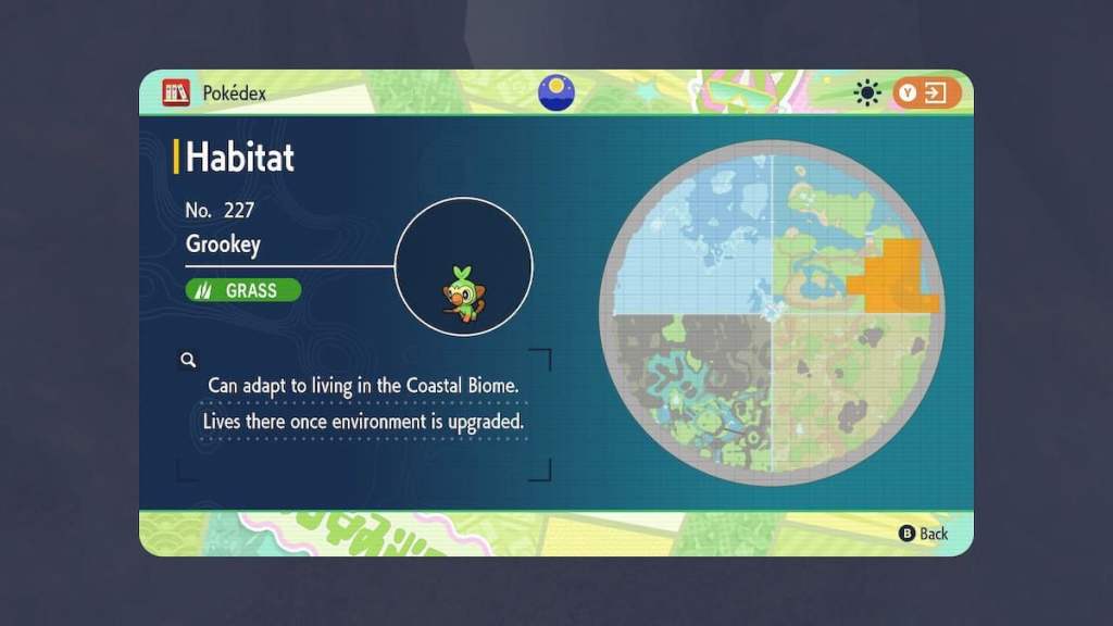 Grookey is another Grass-type starter Pokemon that you can find in the Coastal biome. You will need to grab the Coastal Biodiversity upgrade from the Support Board, and then you will begin working on trying to get Grookey to add to your growing Pokedex for The Indigo Disk.