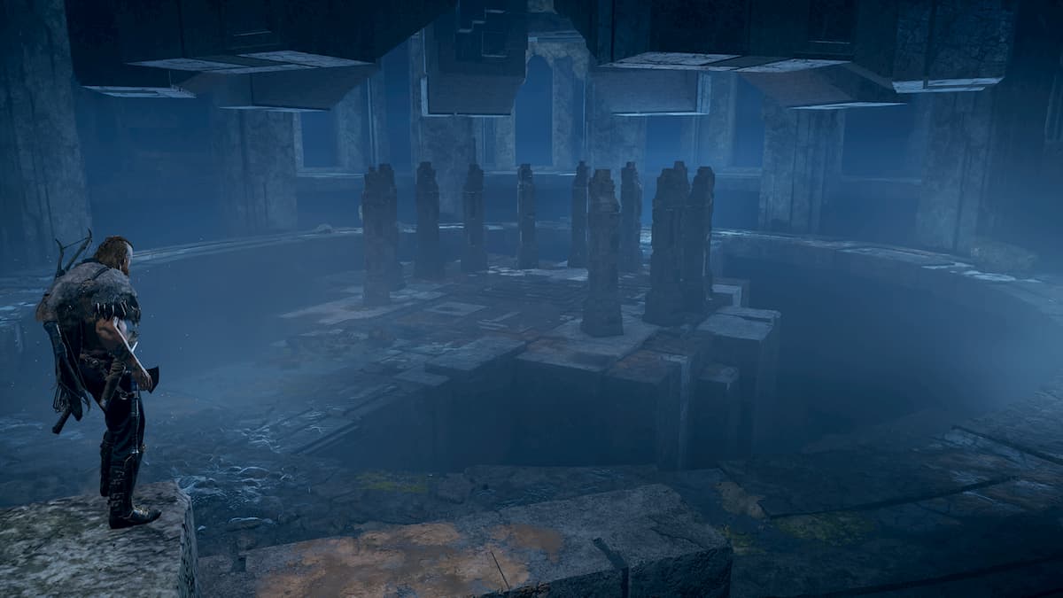 Once you’ve completed all of the caves and killed all of the zealots, you need to go to Myrdinn’s Cave, which you can find in Hamtunscire. It’s south to a fast travel point, to the southeast of Uffentune. There will be a cave that you can wiggle into, and you’ll need to do a few parkour jumps to make your way through it. Eventually, there will be a pool of water you need to dive into and swim to the other side. When you reach the large cavern, work your way to the right, and you’ll find more of the polished stone all over, and then you’ll have to do more parkour jumps.