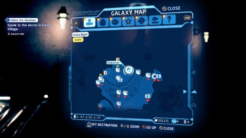 Ubbla Mollbro can be found in the northern portion of the casino. Talk to her to start a mission that will require you to talk to the doctor in Ewok Village.
