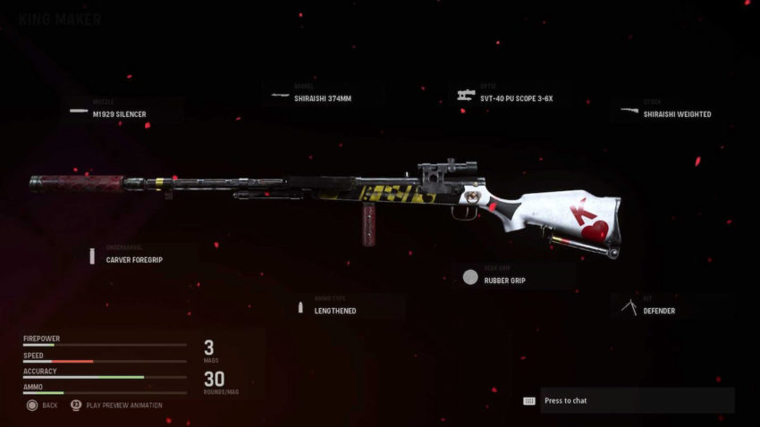 The other challenge is a much easier one, as you’ll only need to win Champion Hill Duos matches five times. This will actually nab you two items: the Epic-rarity Kingmaker Type 100 blueprint and the Legendary-rarity First Love calling card. Despite it being Epic, earning the Kingmaker blueprint will permanently unlock outstanding attachments for the Type 100, such as the Shiraishi Weighted stock, Shiraishi 374mm barrel, and Carver Foregrip — all of which radically reduce the gun’s recoil.
