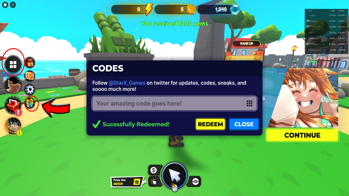Follow the instructions below to redeem codes in Anime Catcher Simulator.