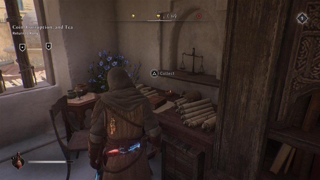 From your Investigation screen, there will be an area allocated for Al-Jahiz, where the objective is to ‘Return the books to the House of Wisdom‘. Each time you find a book location in Assassin’s Creed Mirage, you can bring it back to Al-Jahiz at the Library, and he will reward you with a handful of crafting and upgrade materials. There are six books in total to collect to complete this objective.
