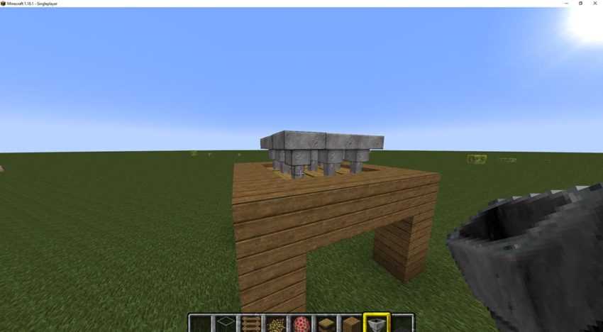 Note that a 1×1 area isn’t necessarily functional — chickens will be pushed into the walls around it which will kill them. Ensure that you place the chest first, then sneak and left-click to place the hopper on top. This will ensure it’s connected; failing to do so will result in your resources being stuck in the hopper.