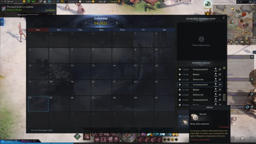 Make sure to check which events are ongoing. If you need silver, it’s important to participate in these events, so you don’t lose out.
