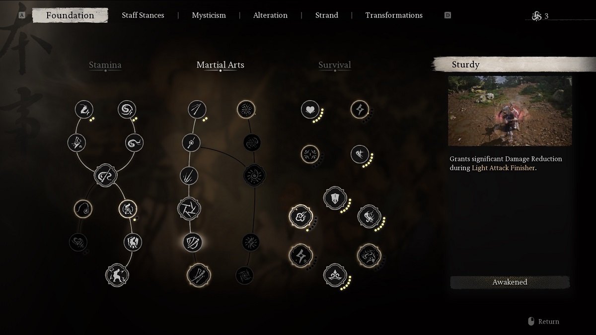 Unlocking new stance skills and improving Focus Points should be a top priority early in the game, but don’t underestimate the importance of Survival skills.