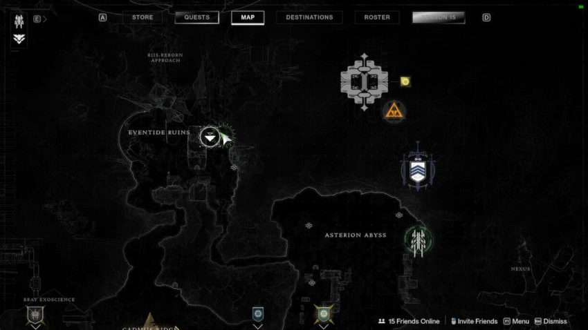 The first step involves players traveling to the Eventide Ruins area on Europa. You can spawn at the spawn point in the area itself, then turn around and drop down the cliff face behind you. Follow the marker down a small slope and you will find the recipe.