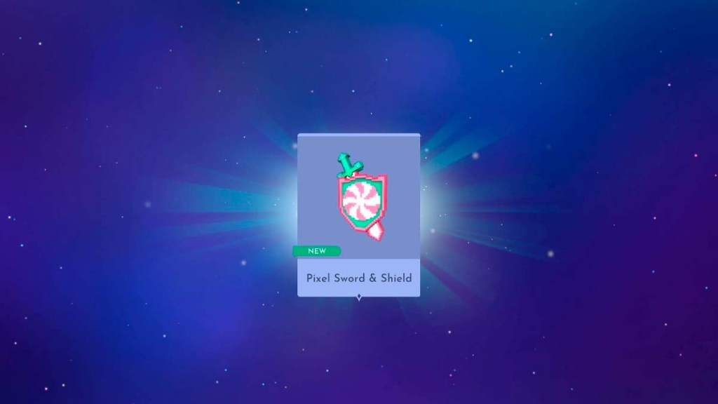 The mystical sword will be in a stump in the Forest of Valor. Once found, use a shovel to unearth it. A blue Clothing bag will go directly to the inventory; use it to reveal the Pixel Sword and Shield, an item I shall never take off my character’s back.