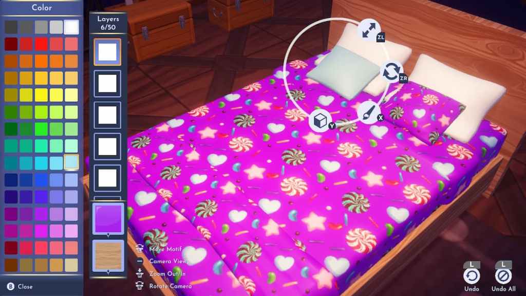 Once the item is crafted, it can be placed in the player’s home. From there, a prompt will pop up asking if players would like to customize the item using the Touch of Magic Tool. Players will be able to select the colors and also add fun Motifs to their designs as well. Using some creativity, players will design some pretty cool things for their houses.