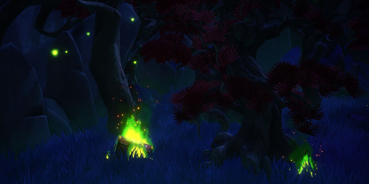 With the updated Royal Watering Can in hand, players should then head to the Forgotten Lands and locate five patches of green fire for the next part of the quest. To extinguish the fires, they simply need to use the watering can and water the ground, similar to watering a planted crop. Extinguishing the green fire will cause Glass to drop, which can be collected.