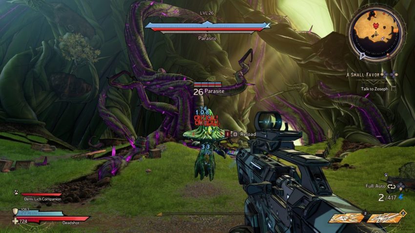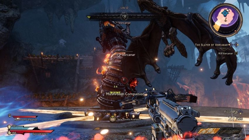 Like blue health bars, yellow bars won’t appear right away. You probably won’t see a yellow health bar until you reach the Weepwild Dankness. Past games used to take care of yellow health bars with corrosive damage. In the Wonderlands, you take care of yellow health bars by hitting that enemy with poison damage.