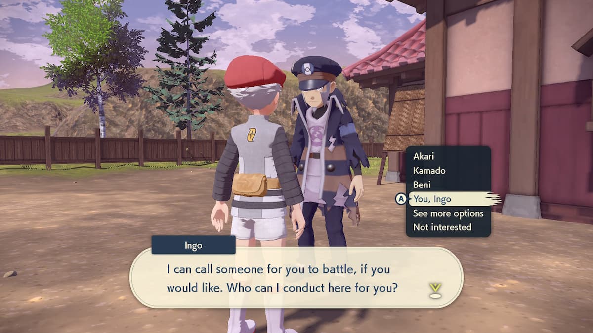 Speak to Ingo outside of the Training Grounds and he’ll offer to call in trainers to battle with you. All of these trainers make good opponents but the fastest way to get a big boost of experience is by selecting “see more options” and then challenging Ingo himself because he’s the most difficult trainer to face.