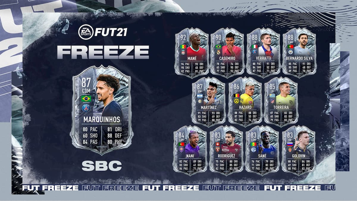 On December 11, FIFA 21’s winter Freeze program went live, and with it was a new limited-time Squad Building Challenge. The reward for this challenge is a special 87 OVR player item of PSG midfielder Marquinhos. While 87 OVR SBC reward cards are usually difficult to obtain, this one might be a little easier thanks to the number of lineups you will need to fill out.