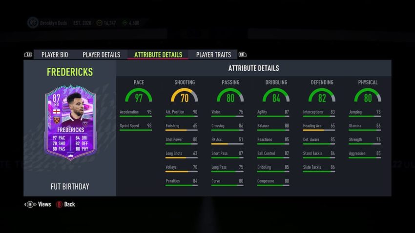 This SBC, in total, will cost around 150,000-160,000 Coins. While that price is just for an 87 OVR player, remember that Fredericks has an English link, incredible pace, and a 5* Weak Foot rating.
